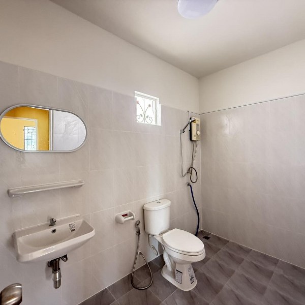 มี 3 ห้องนอน 2 ห้องน้ำ ต่อเติมหลังคาหน้าบ้าน และครัวเรียบร้อย